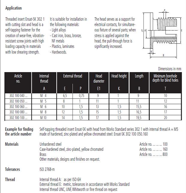 302-1型自攻汕头丝套是一种新型的紧固件,使用后能够加强螺纹强度。产品有内外牙,将其嵌入塑料,铝合金,铸铁,铜等较软材料内,形成的内螺纹孔就可以具有较高的强度。